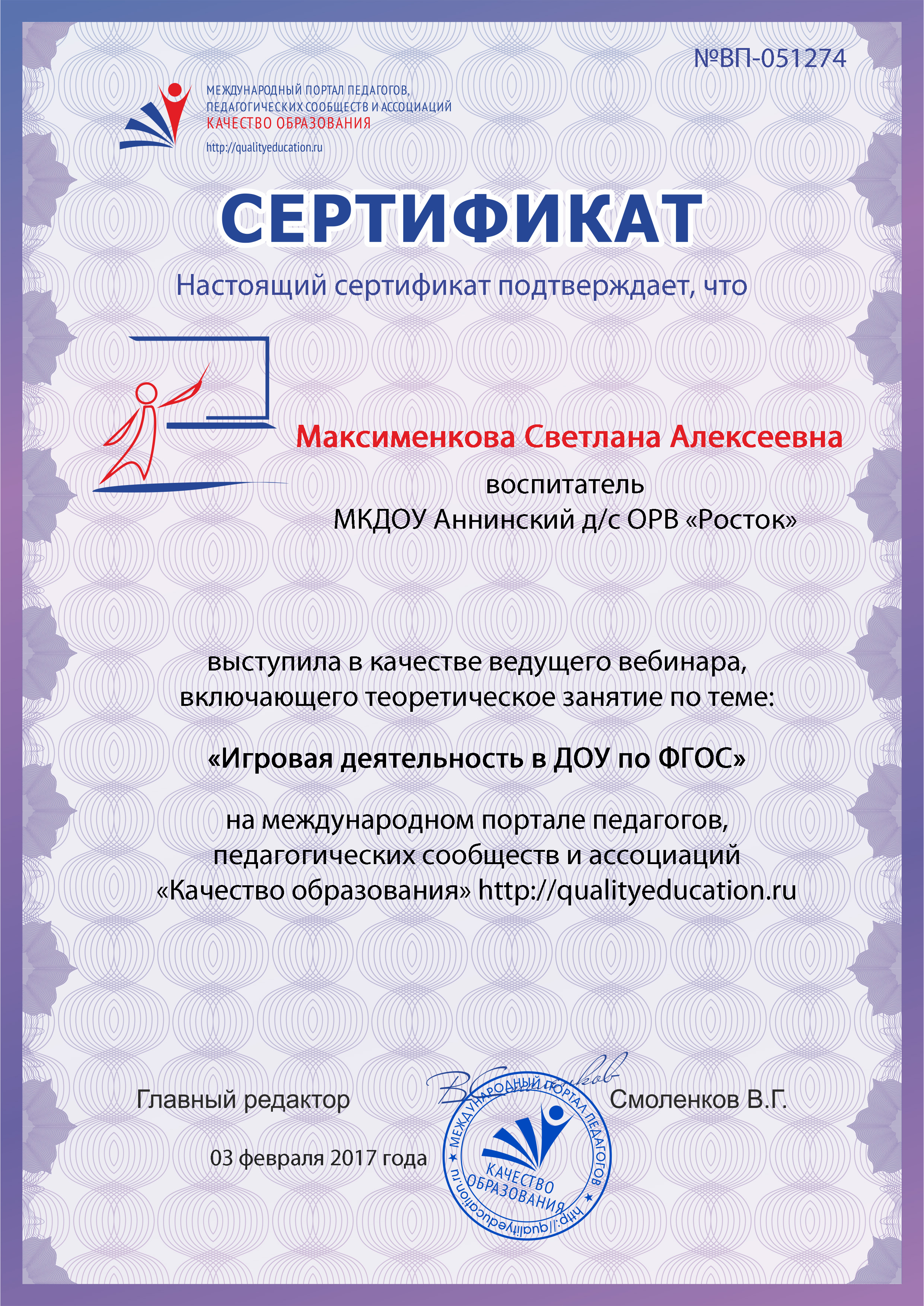 Сайт воспитателя МБДОУ Аннинский д/с ОРВ "Росток"